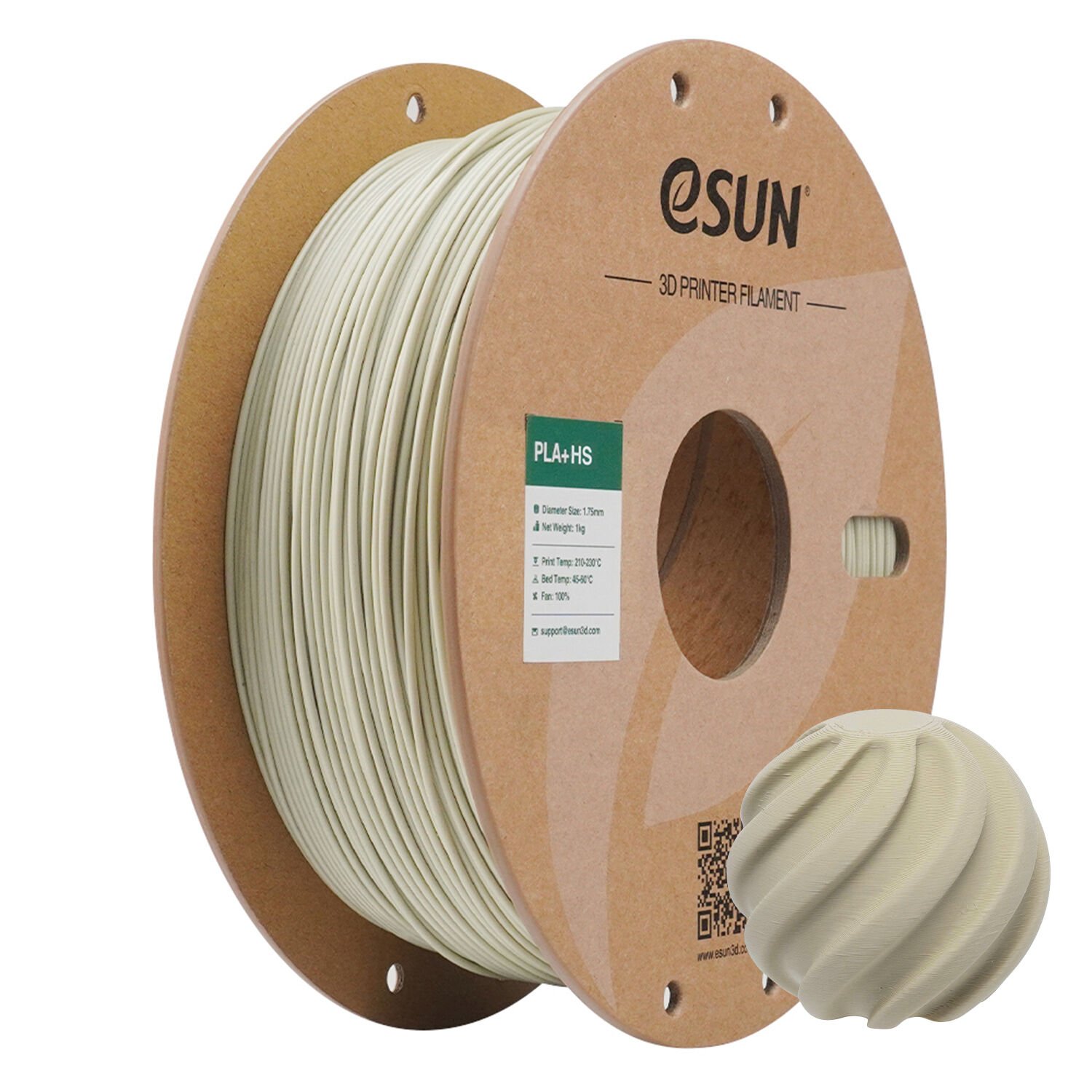 Kolay baskı alınabilen yapısıyla hem amatör hem profesyonel kullanıcılar için uygun olan ESUN PLA+ HS Açık Haki Makaralı Filament 1,75mm 1kg, 210–230°C nozzle sıcaklığı ve 45–60°C tabla sıcaklığı aralığında stabil sonuçlar verir.